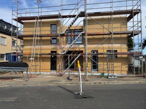 Unser großes Bauprojekt an der diagnostisch-therapeutischen Wohngruppe nimmt weiter Gestalt an. Im März haben die ersten Vorarbeiten auf dem Gelände begonnen – Zäune wurden entfernt, der Garten vorbereitet und die Bodenplatte gegossen. Im Juli war es dann soweit: Das neue Haus wurde aufgestellt und ist nun deutlich als künftiger Teil unseres Angebots zu erkennen.